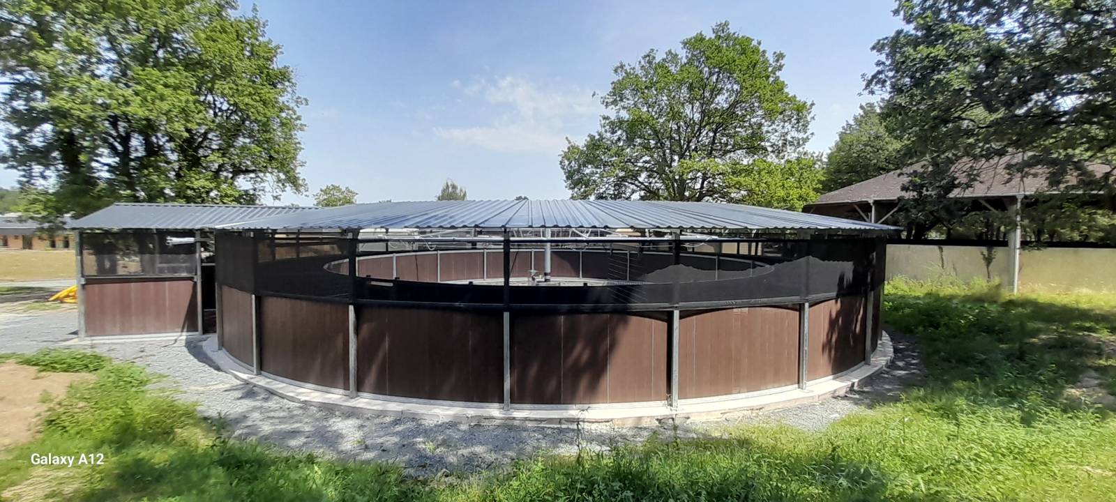 Nous avons fabriqué et installé un Marcheur CTL circulaire, semi couvert, diamètre 15 mètres pour 6 chevaux, modèle de notre gamme en résine PVC. Les caractéristiques principales : Mécanisme d'entrainement 6 places complet structure métallique galvanisée cintrée formant un couloir parfaiteme...